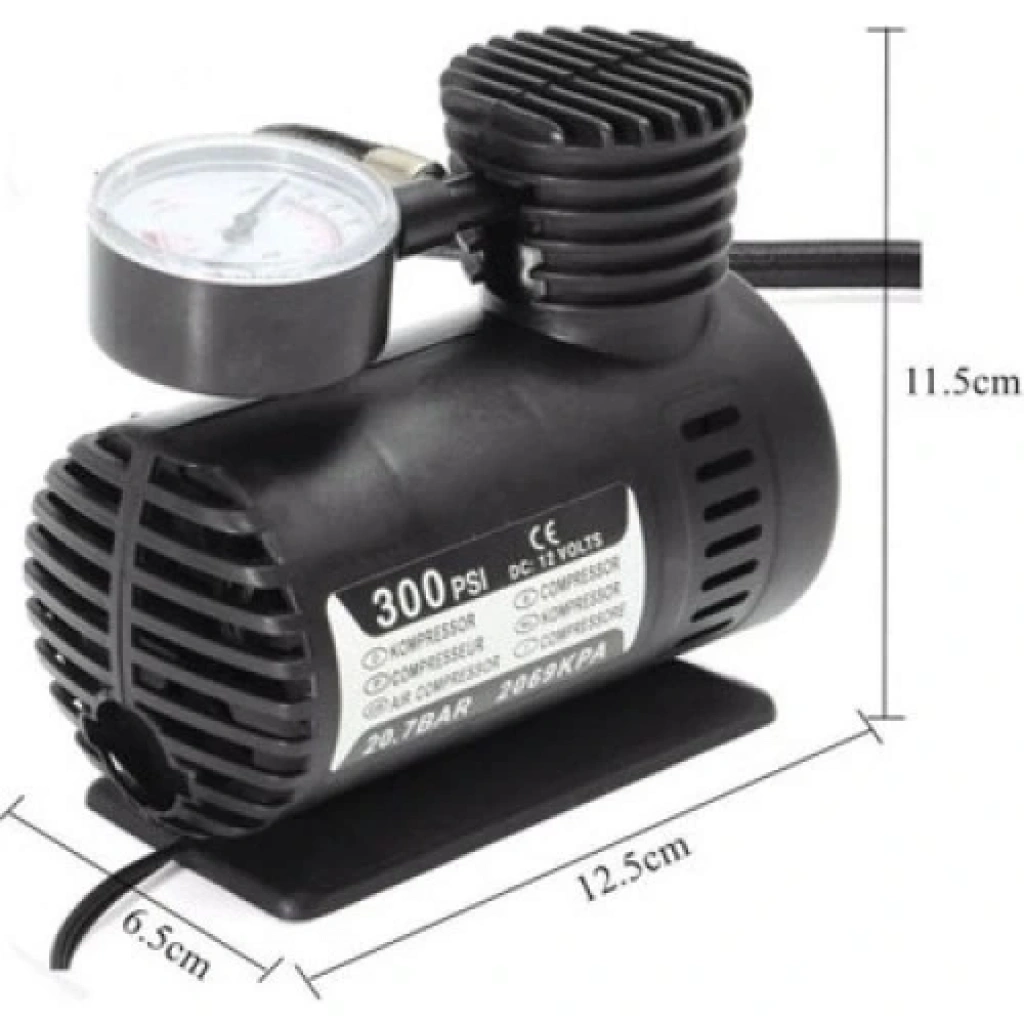 12V 300 PSI Taşınabilir Hava KompresörüÜrün Açıklaması:12V 300 PSI taşınabilir hava kompresörü ile araç lastiklerinizi ve diğer şişirilebilir ürünlerinizi hızlı ve kolay bir şekilde şişirin. Kompakt tasarımı sayesinde aracınızda kolayca taşıyabilirsiniz. Araç çakmak soketine bağlanarak çalışan bu kompresör, lastik basınç seviyesini hızlı bir şekilde kontrol etmenize ve ideal basınca ulaşmanıza yardımcı olur.Özellikler:Güç: 12V DC, araç çakmak soketi ile çalışırBasınç Kapasitesi: 10 barHava Hacmi: 10 litreMotor Gücü: 0,32 hpKompakt ve Taşınabilir Tasarım: Araçta az yer kaplar, kolayca taşınabilir.Çok Amaçlı Kullanım: Araç lastikleri, bisiklet, motosiklet, şişme yataklar, top gibi şişirilebilir ürünler için uygundur.Kullanım Alanları:Araç lastiklerini şişirmeBisiklet ve motosiklet lastikleriŞişme yataklar, toplar ve diğer şişirilebilir ürünlerPaket İçeriği:1 adet 12V 300 PSI Hava Kompresörü