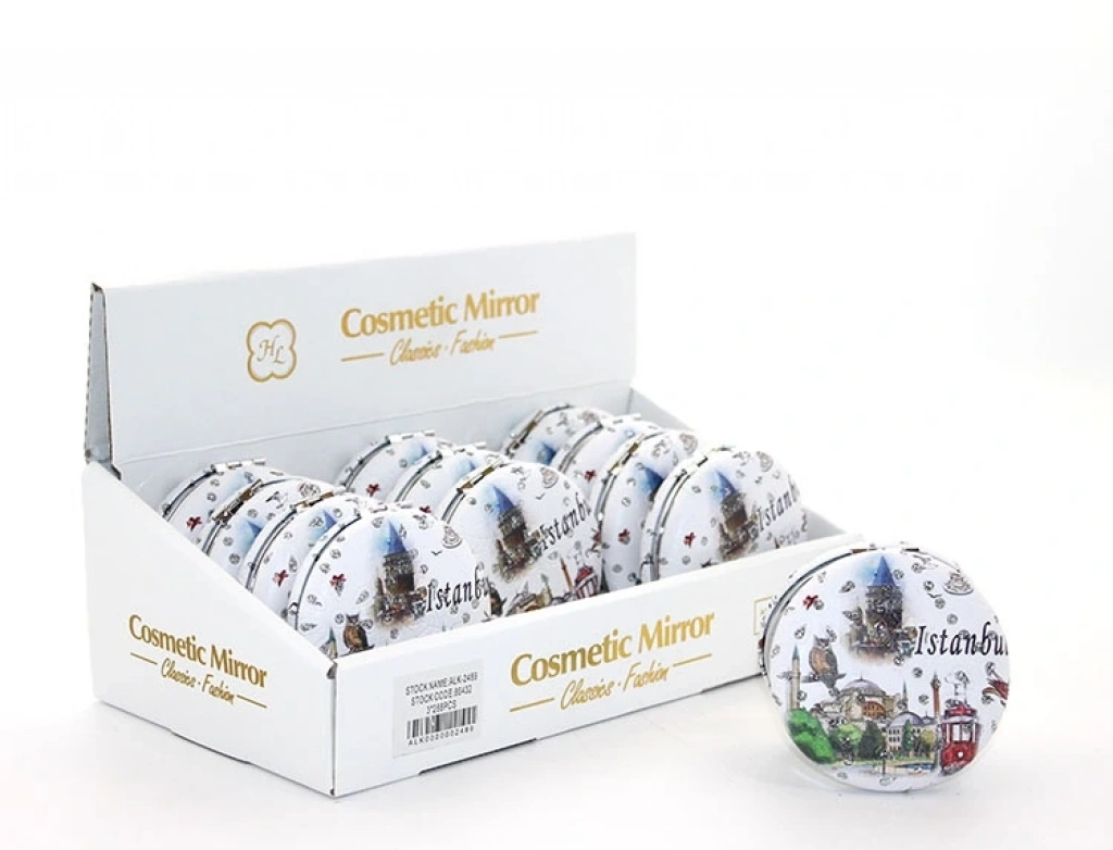 TAŞLI İSTANBUL TASARIMI EL AYNASI KALIN MODEL 8Ürün ÖzellikleriTaşlı İstanbul Tasarımı El Aynası Kalın Model 8, İstanbul temalı zarif bir tasarıma sahip olup, taşlı süslemelerle şıklık katılmıştır. Kalın model, dayanıklı ve uzun ömürlü kullanım sunar. İstanbul’un simgeleri ve taş detayları, aynaya estetik bir görünüm kazandırırken, her türlü dekoratif kullanım için uygundur. Yuvarlak yapısı, elinize rahatça oturur ve kullanımı oldukça kolaydır. Hem günlük kullanım hem de hediye olarak mükemmel bir tercihtir.Paket İçeriği1 adet Taşlı İstanbul Tasarımı El Aynası Kalın Model 8.