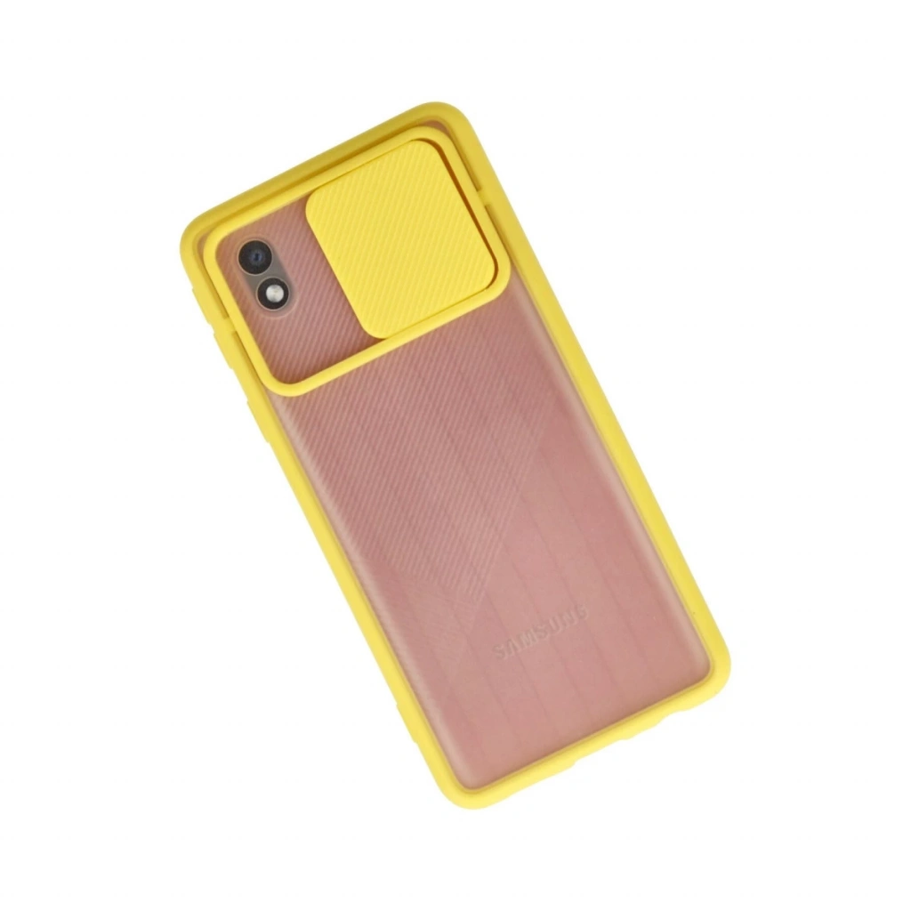 • Samsung Galaxy A01 Core Kılıf Palm Buzlu Kamera Sürgülü Silikon - Sarı