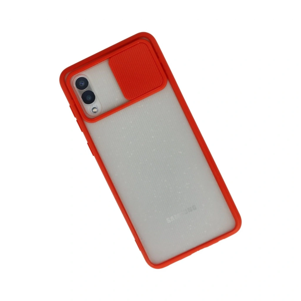 • Samsung Galaxy A02 Kılıf Palm Buzlu Kamera Sürgülü Silikon - Kırmızı