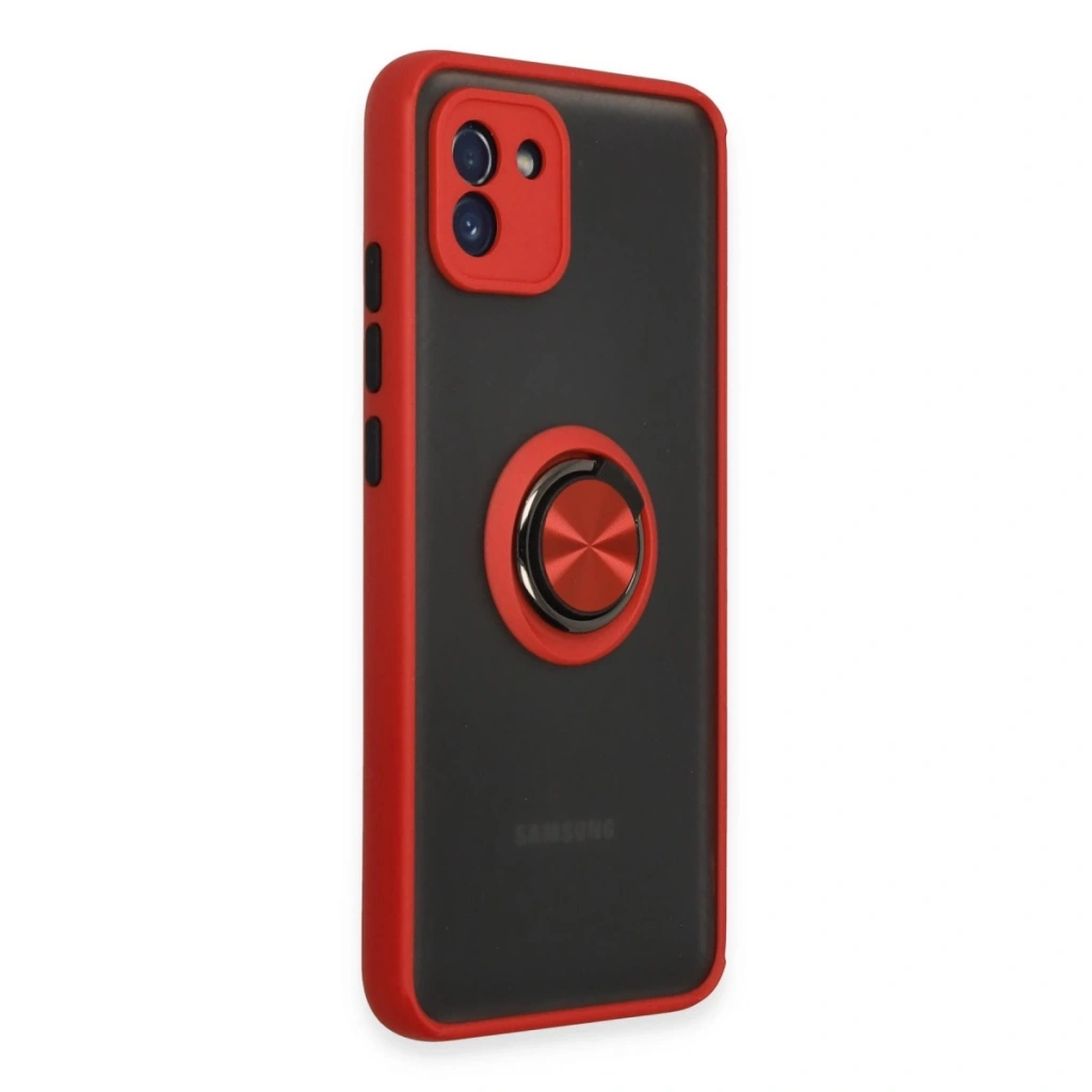 • Samsung Galaxy A03 Kılıf Montreal Yüzüklü Silikon Kapak - Kırmızı