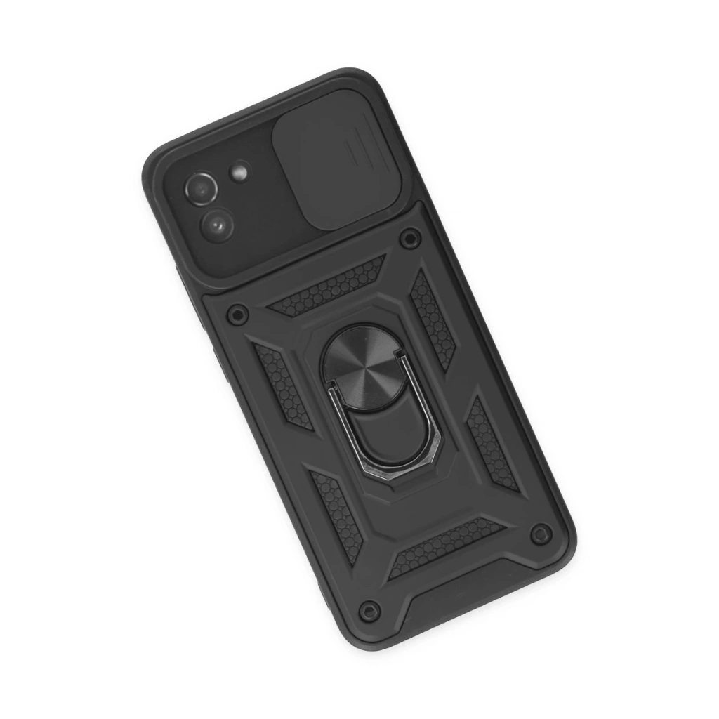 • Samsung Galaxy A03 Kılıf Pars Lens Yüzüklü Silikon - Siyah