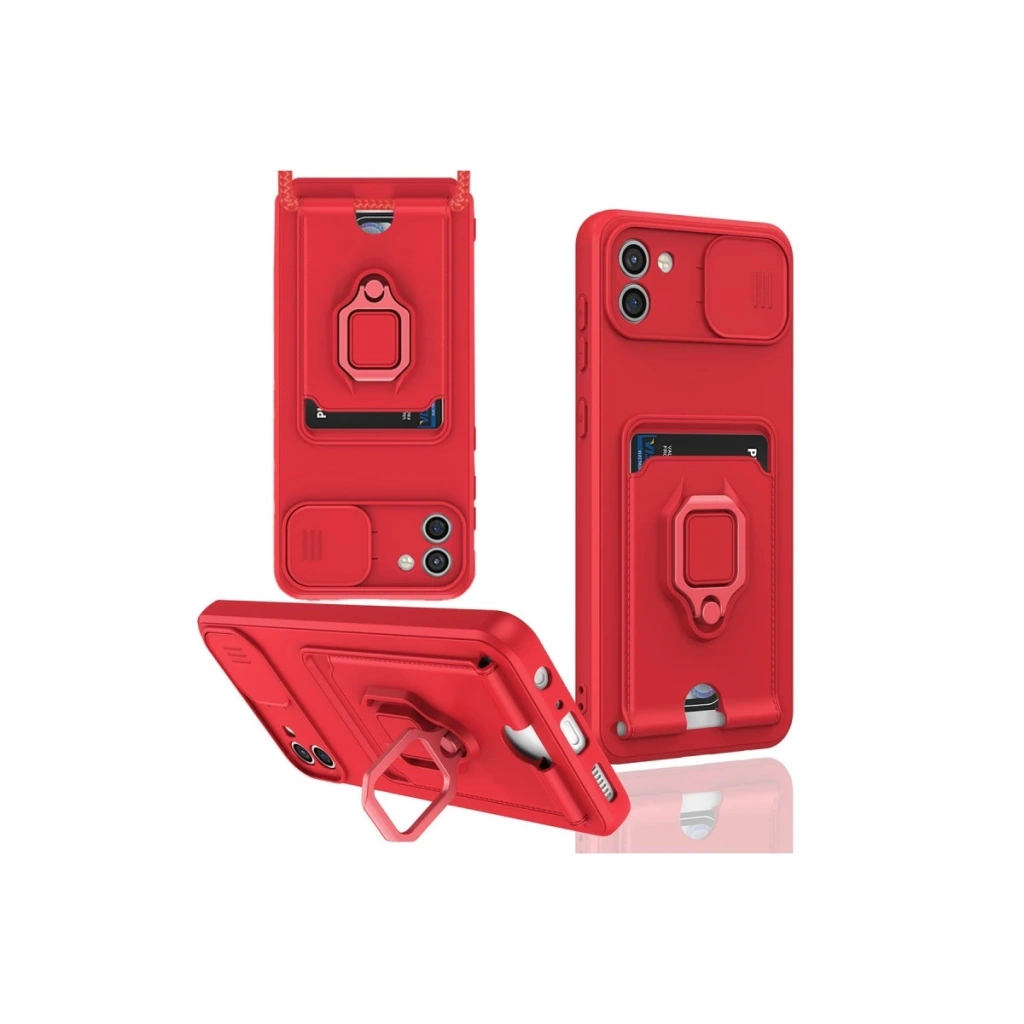 • Samsung Galaxy A03 Kılıf Zuma Kartvizitli Yüzüklü Silikon - Kırmızı