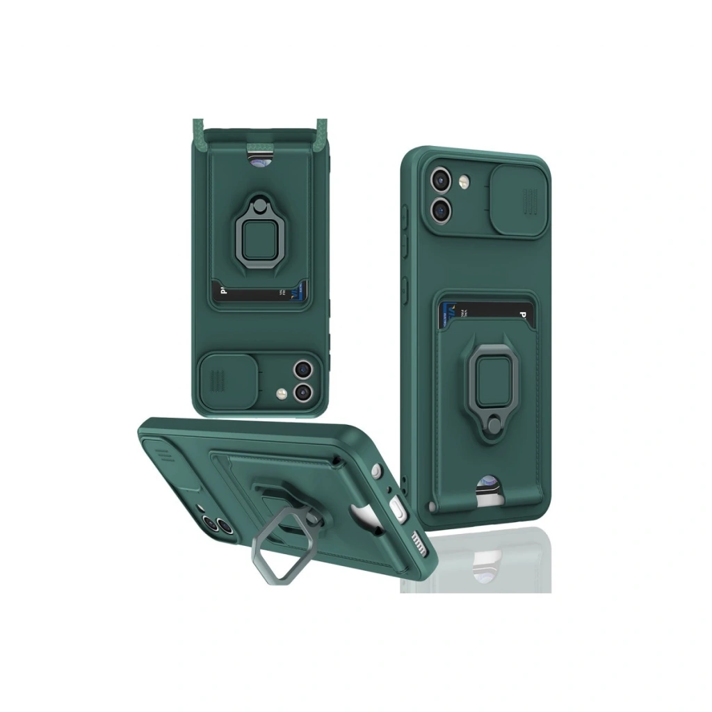 • Samsung Galaxy A03 Kılıf Zuma Kartvizitli Yüzüklü Silikon - Yeşil