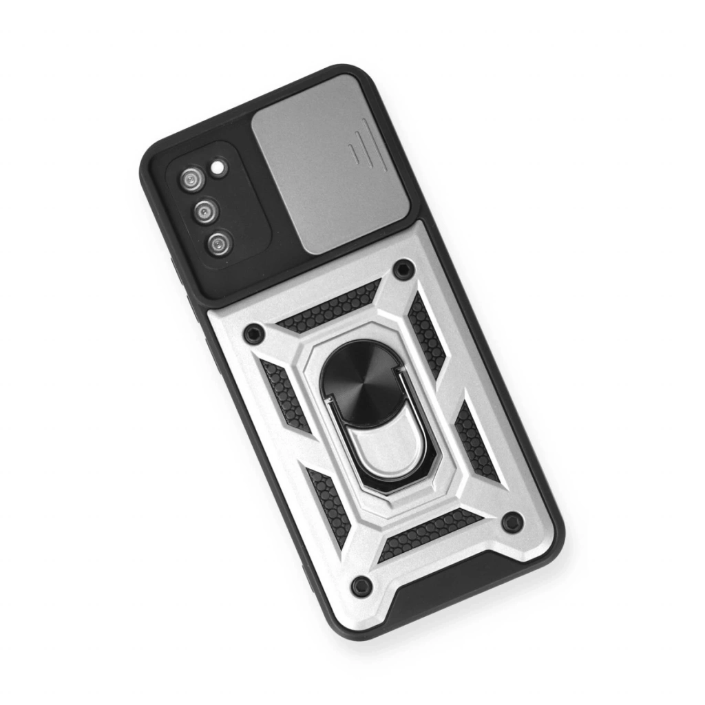 • Samsung Galaxy A03s Kılıf Pars Lens Yüzüklü Silikon - Gümüş