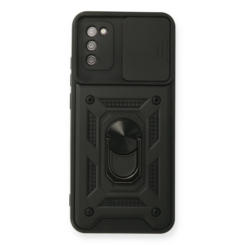 • Samsung Galaxy A03s Kılıf Pars Lens Yüzüklü Silikon - Siyah