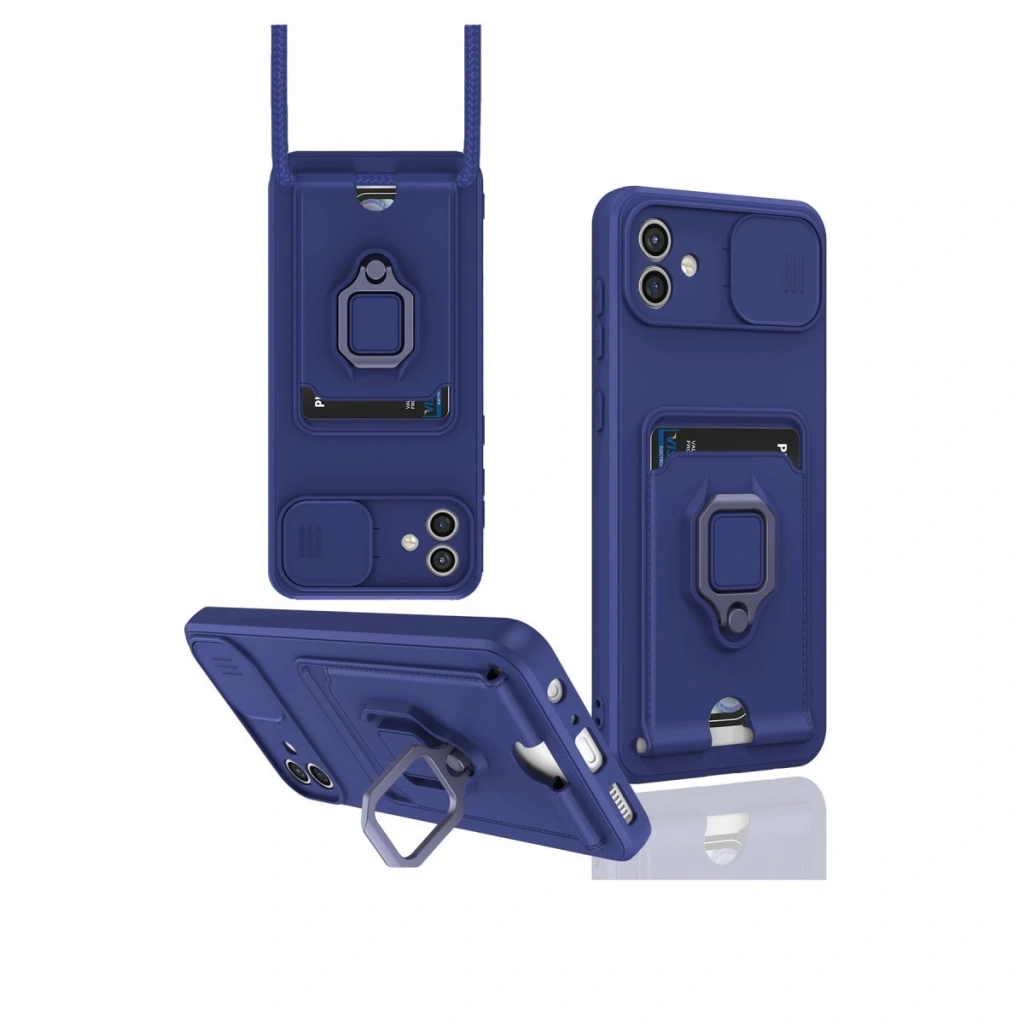 • Samsung Galaxy A05 Kılıf Zuma Kartvizitli Yüzüklü Silikon - Lacivert