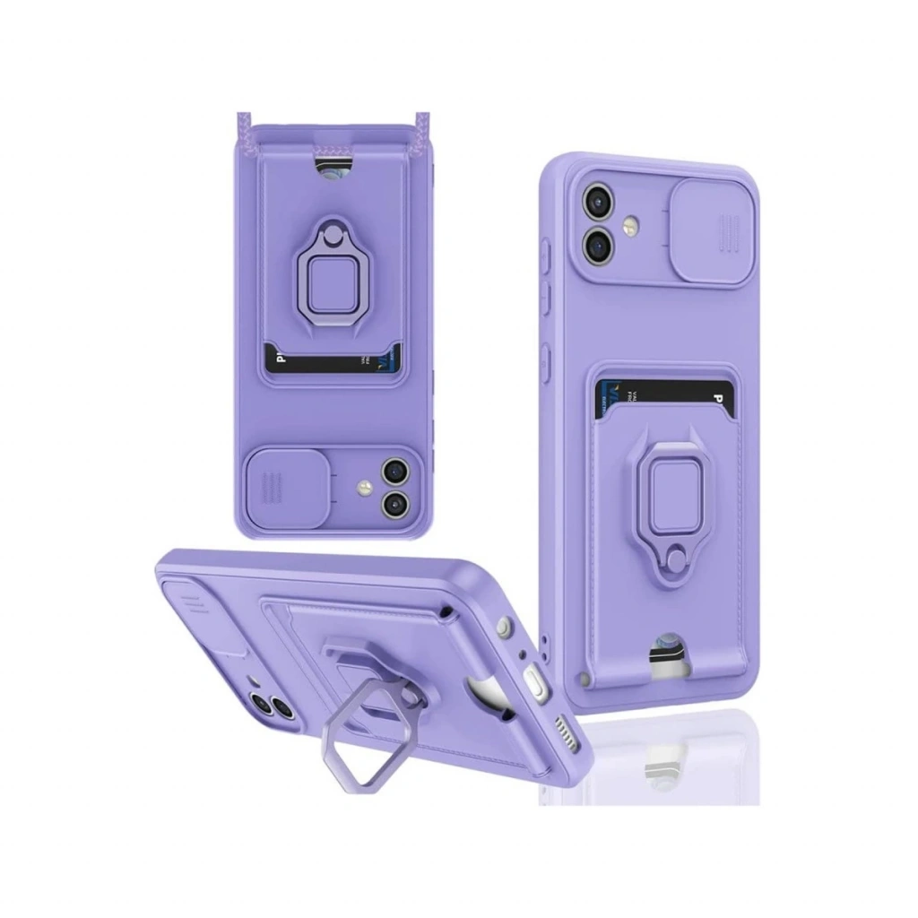 • Samsung Galaxy A06 Kılıf Zuma Kartvizitli Yüzüklü Silikon - Lila