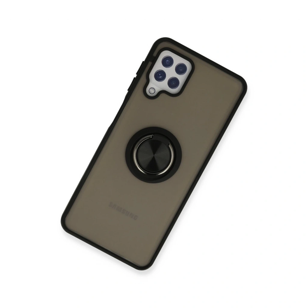 Samsung Galaxy A22 Kılıf Montreal Yüzüklü Silikon Kapak - Siyah