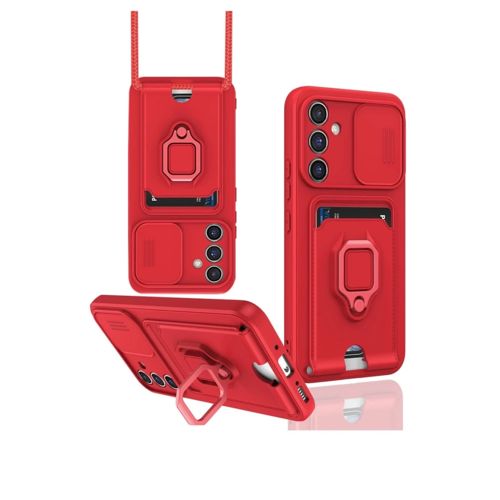 • Samsung Galaxy A24 4g Kılıf Zuma Kartvizitli Yüzüklü Silikon - Kırmızı