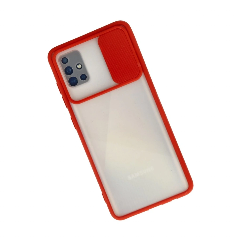 • Samsung Galaxy A71 Kılıf Palm Buzlu Kamera Sürgülü Silikon - Kırmızı