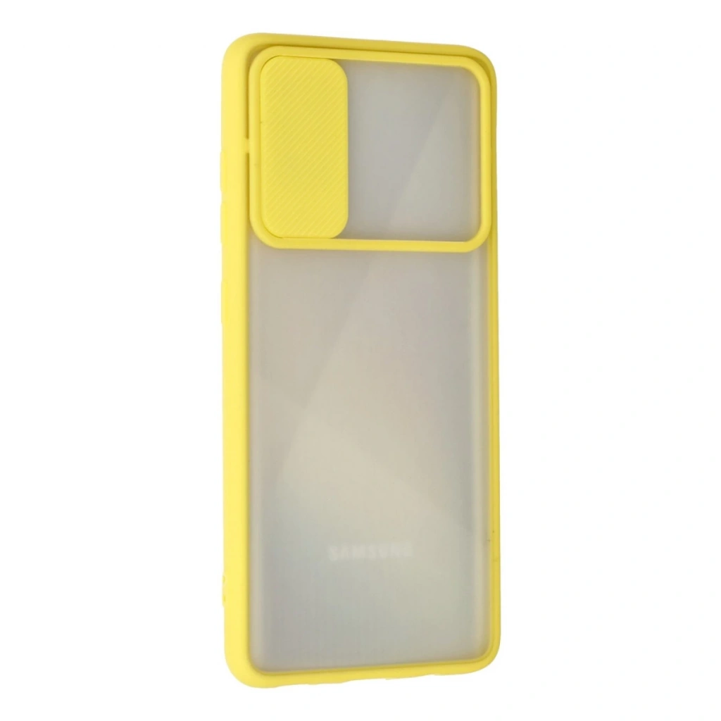 • Samsung Galaxy A71 Kılıf Palm Buzlu Kamera Sürgülü Silikon - Sarı