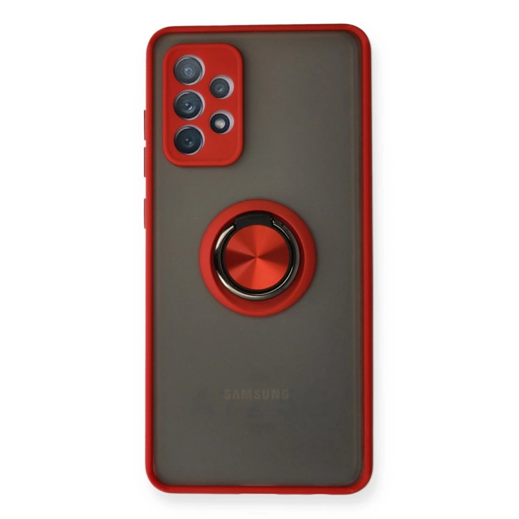 • Samsung Galaxy A72 Kılıf Montreal Yüzüklü Silikon Kapak - Kırmızı