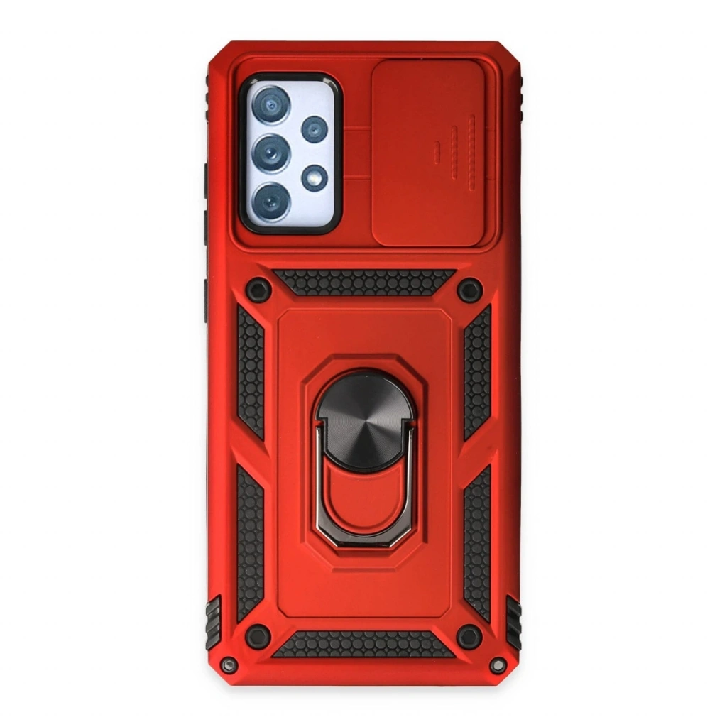 • Samsung Galaxy A72 Kılıf Pars Lens Yüzüklü Silikon - Kırmızı