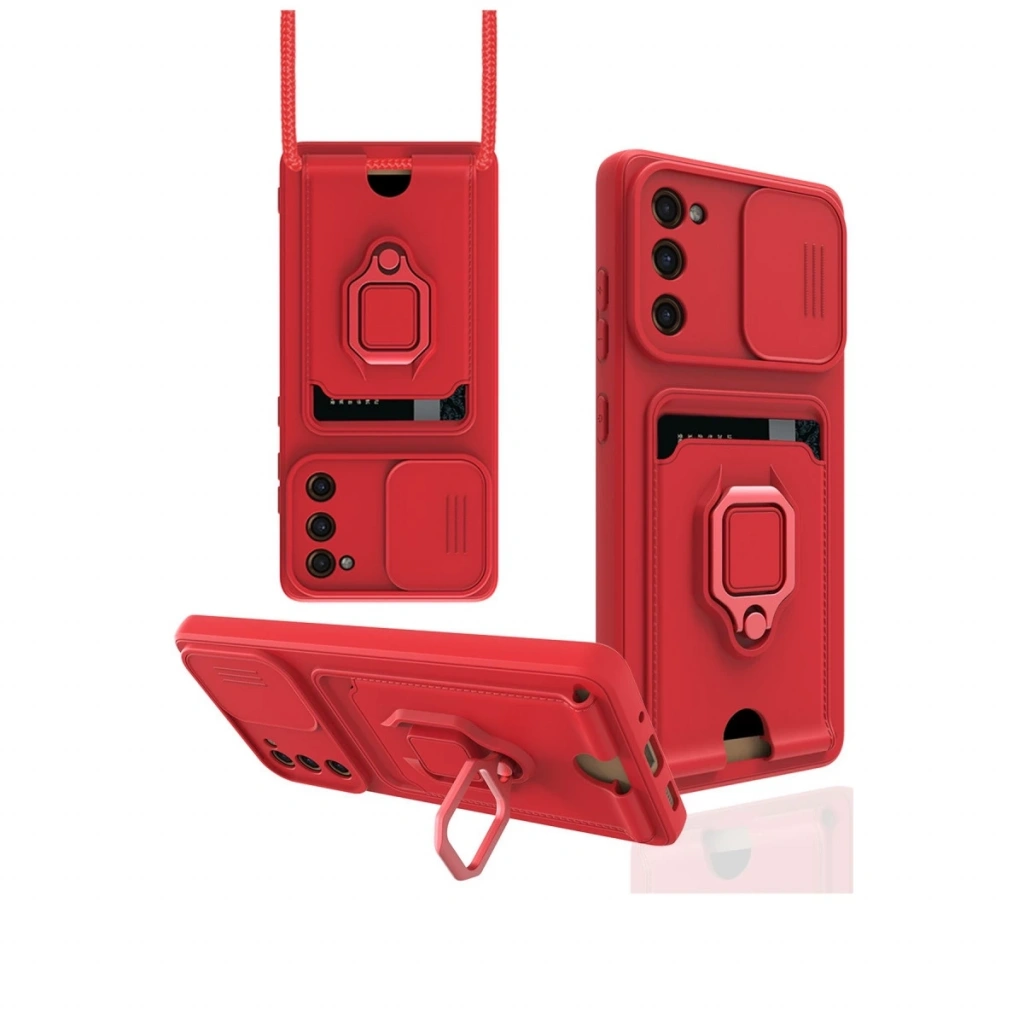 • Samsung Galaxy S20 Fe Kılıf Zuma Kartvizitli Yüzüklü Silikon - Kırmızı