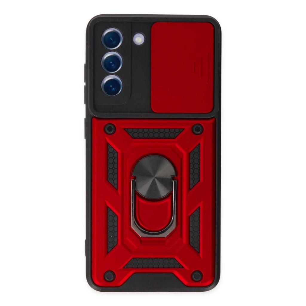 • Samsung Galaxy S21 Fe Kılıf Pars Lens Yüzüklü Silikon - Kırmızı
