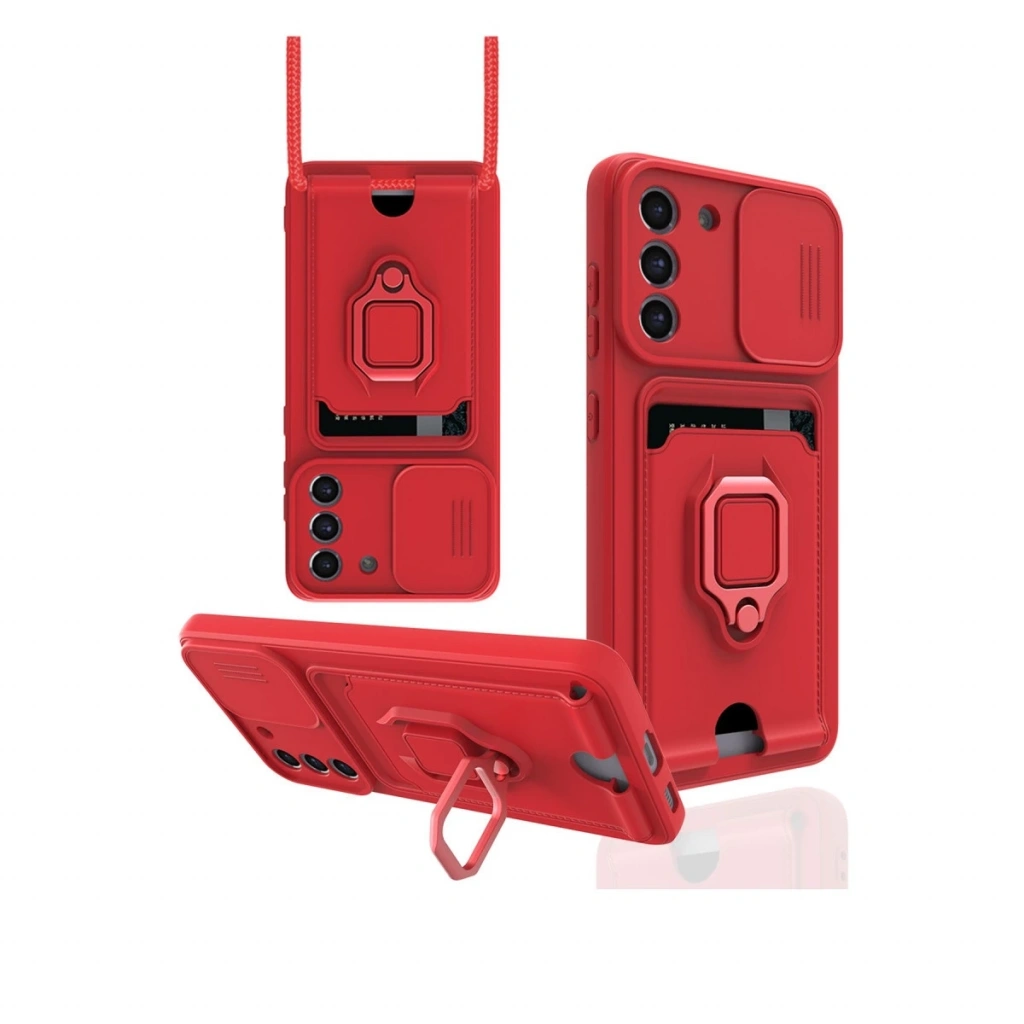 • Samsung Galaxy S21 Fe Kılıf Zuma Kartvizitli Yüzüklü Silikon - Kırmızı