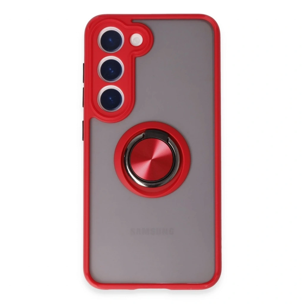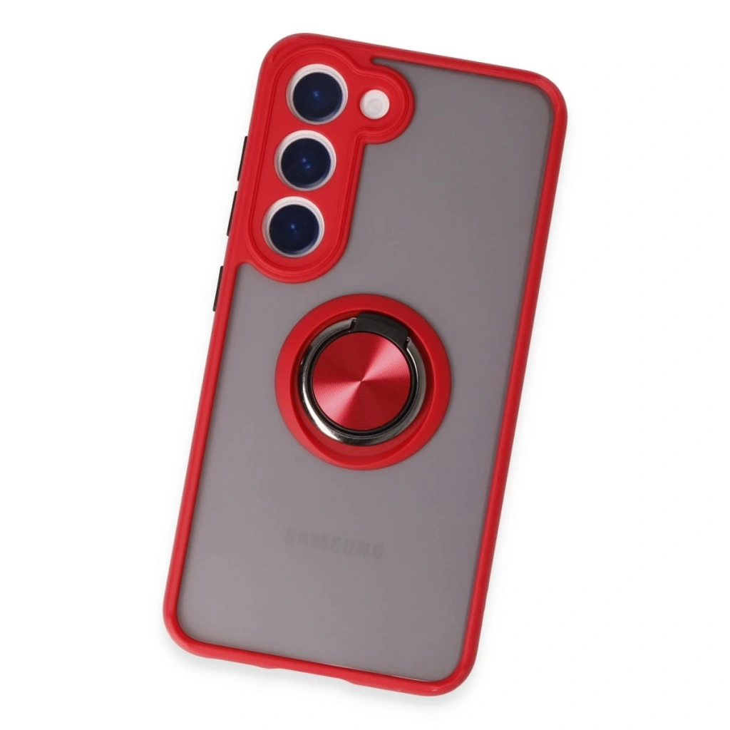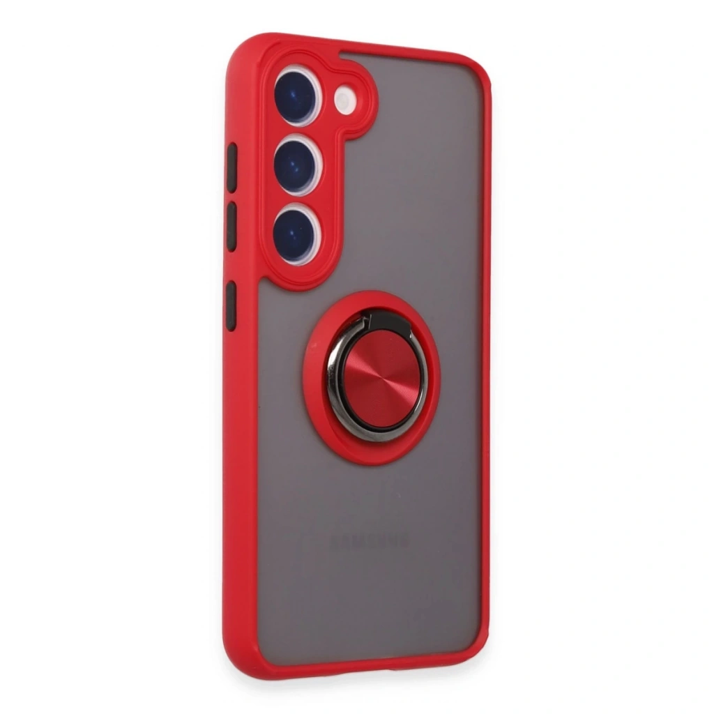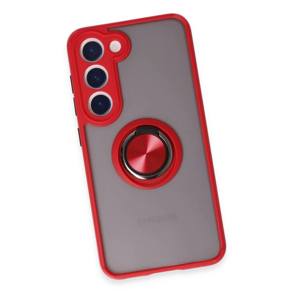 • Samsung Galaxy S23 Kılıf Montreal Yüzüklü Silikon Kapak - Kırmızı