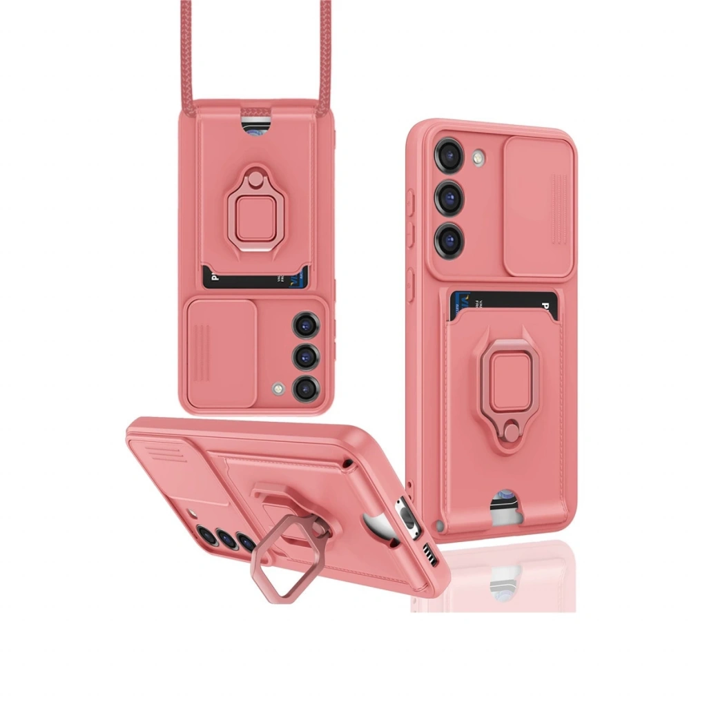 • Samsung Galaxy S23 Plus Kılıf Zuma Kartvizitli Yüzüklü Silikon - Pembe