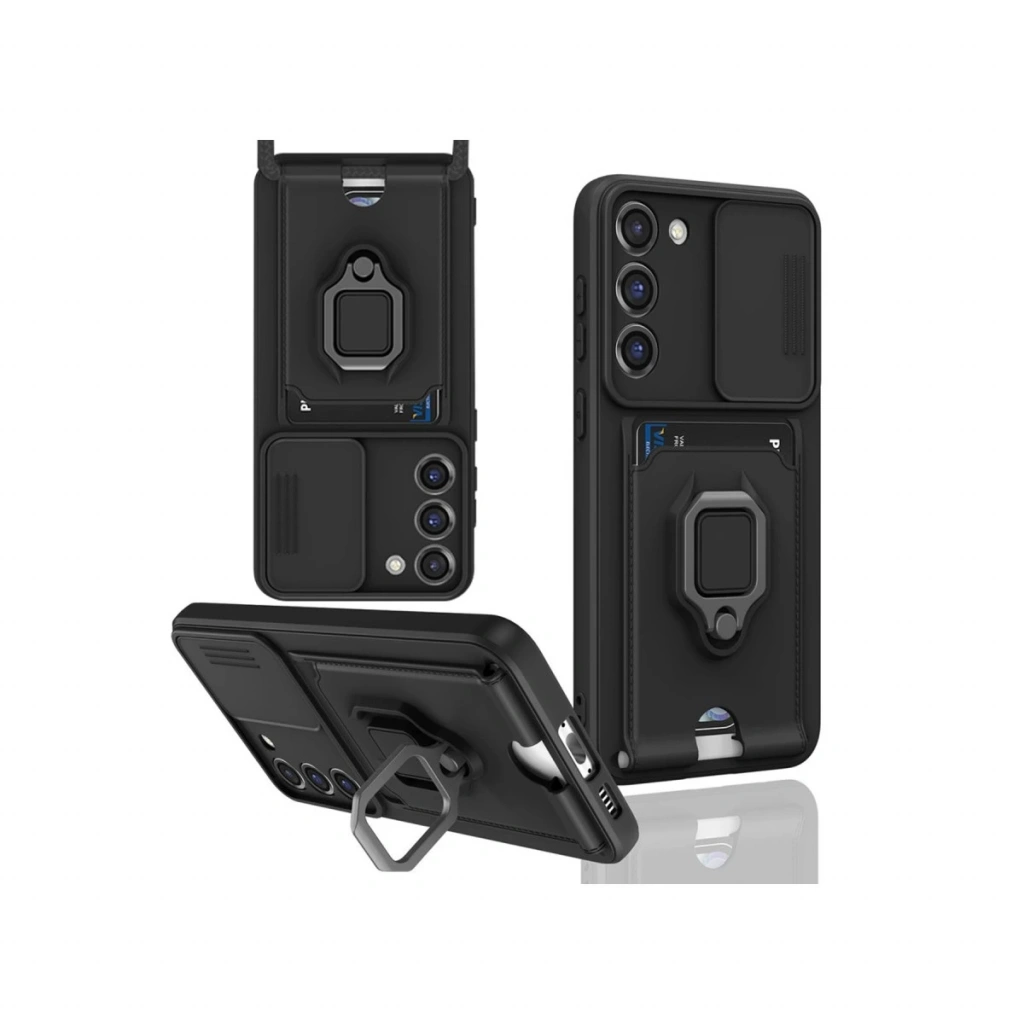 Samsung Galaxy S23 Plus Kılıf Zuma Kartvizitli Yüzüklü Silikon - Siyah
