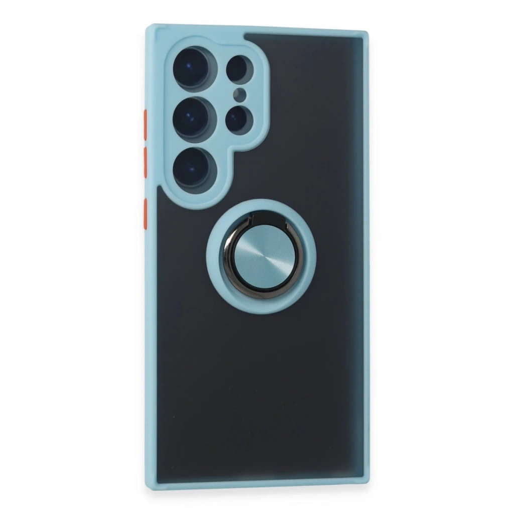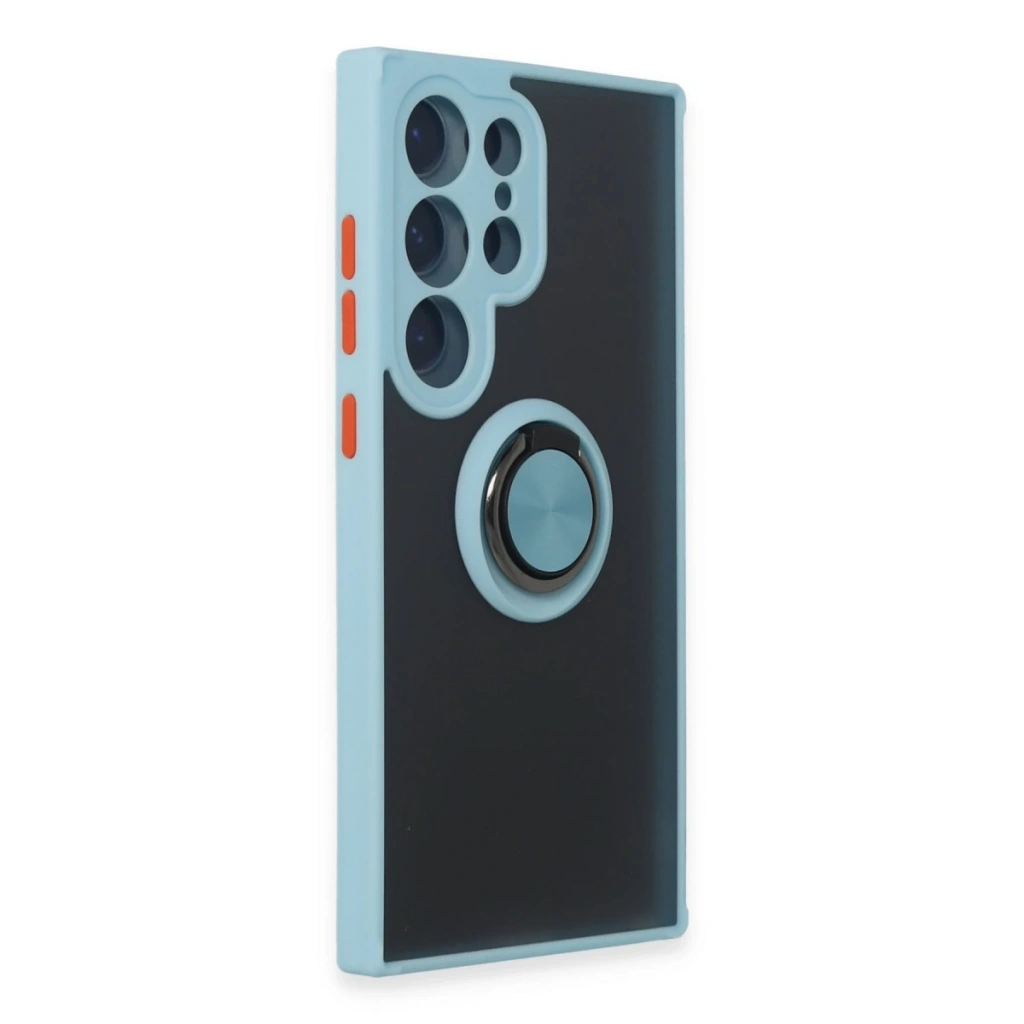 • Samsung Galaxy S24 Ultra Kılıf Montreal Yüzüklü Silikon Kapak - Buz Mavi