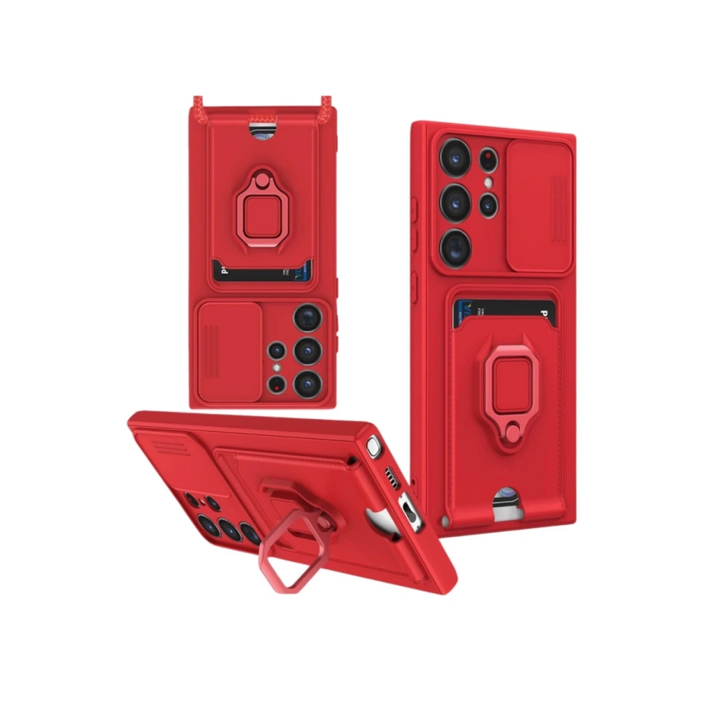 • Samsung Galaxy S25 Ultra Kılıf Zuma Kartvizitli Yüzüklü Silikon - Kırmızı