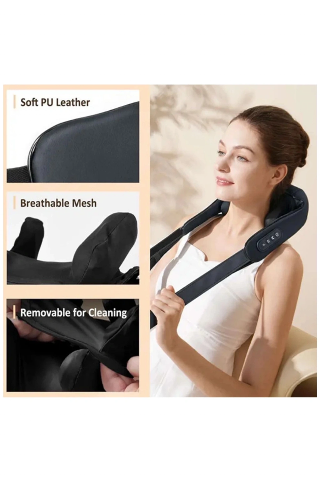 • Yenilikçi masaj başlığı tasarımı insan elini mükemmel bir şekilde taklit ederek omuzunuza boynunuza ve tüm vücudunuza derinlemesine masaj yapar.