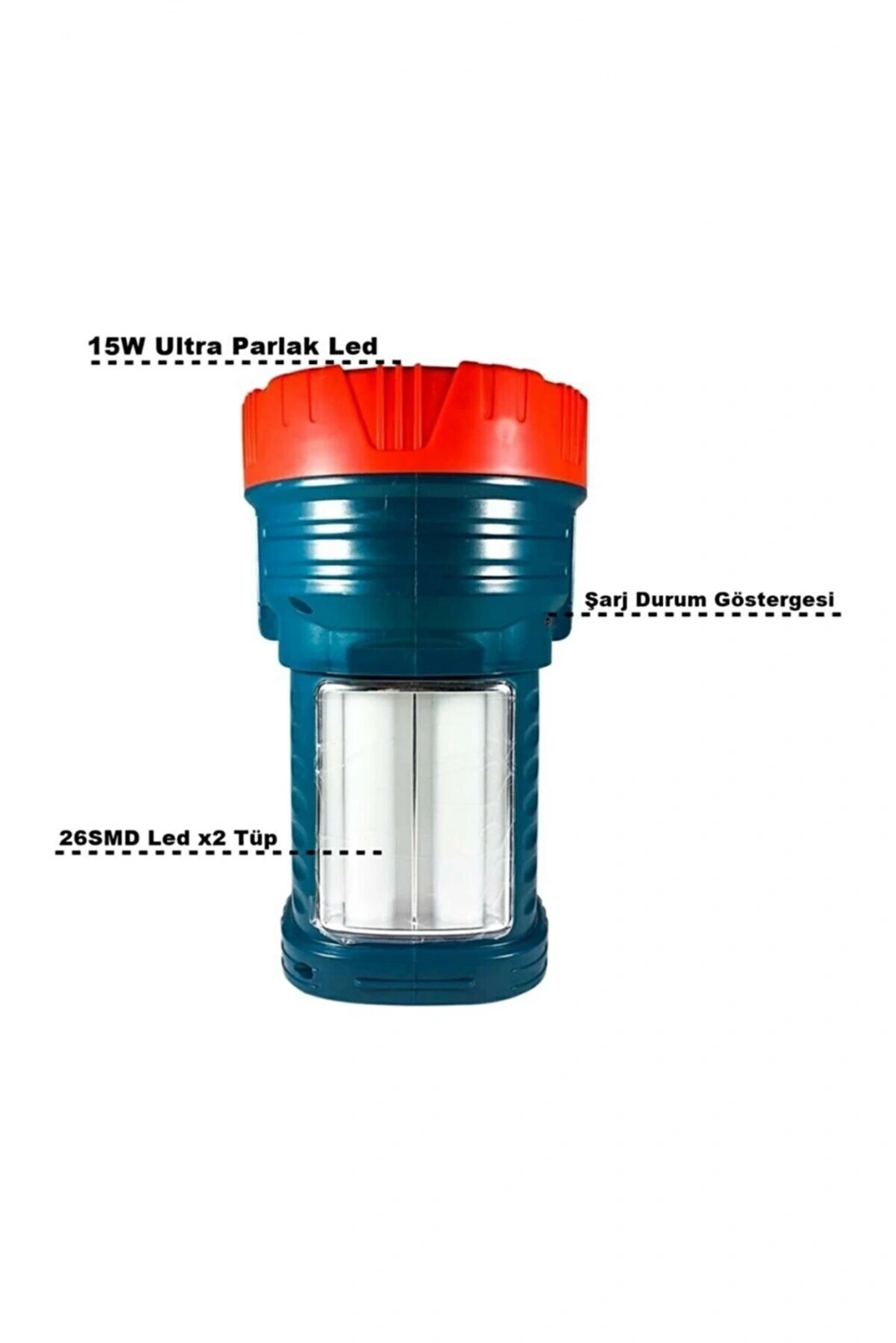 Silver Projektör 15w Led Şarjlı El Feneri Ve X2 Tüp 26smd Led Çift Yönlü