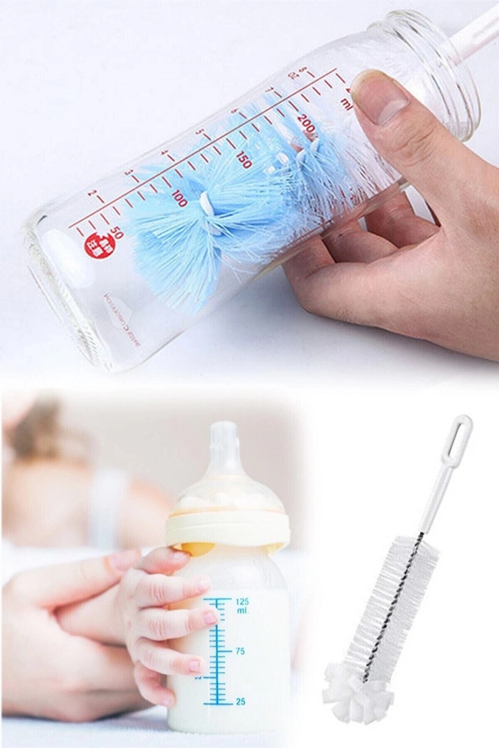 Hijyenik naylon kıllı pratik biberon fırçası her tip biberon ve şişe için elverişlidir