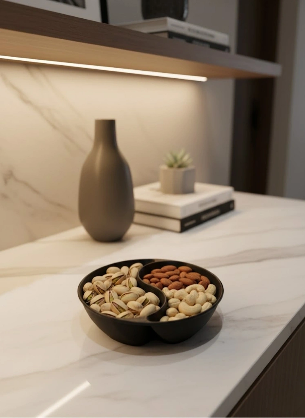 4 adet siyah çerezlik kase seti, günlük atıştırmalık sunumlarını daha düzenli ve keyifli hale getirmek için tasarlanmıştır. 3x12 cm ölçüsündeki kaseler, çerez ve kuruyemiş sunumları için uygun boyuttadır. Set halinde sunulması, birden fazla kişiye servis yapmayı kolaylaştırır.Bölmeli yapısı sayesinde farklı atıştırmalıklar aynı kase içinde düzenli şekilde sunulabilir. Bu özellik, özellikle misafir ağırlarken pratiklik sağlar. Siyah rengi, masa üzerinde sade, modern ve şık bir atmosfer oluşturur.Salon masası, sehpa veya raf üzerinde rahatlıkla kullanılabilir. Günlük çay saatlerinden özel davetlere kadar farklı kullanım alanlarına uyum sağlar. Şık, kullanışlı ve dekoratif bir çerezlik seti arayanlar için ideal bir tercihtir. Aynı zamanda ev hediyesi olarak da değerlendirilebilir.