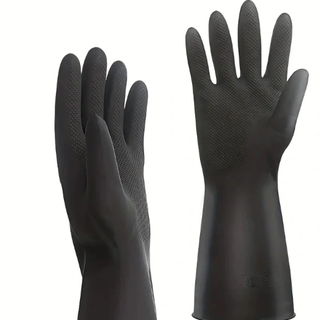 SİYAH RENKLİ ENDÜSTRİYEL ELDİVENÜrün ÖzellikleriSiyah renkli endüstriyel eldiven, üç katmanlı organik lateks malzemeden üretilmiştir ve organik pamuk pudralı astarı sayesinde ellerinizi terletmeden konforlu bir kullanım sunar. Kalın, esnek, yumuşak ve hassas yapısı ile elinizi tam olarak kavrayarak uzun süreli çalışmalarda dahi rahatlık sağlar. Dayanıklı yapısı sayesinde yıpranmaya karşı dirençlidir ve endüstriyel alanlarda güvenli bir kullanım sunar. İnşaat şantiyeleri, bahçıvanlık, tarım, üretim, hayvancılık, temizlik, hijyen ve genel kullanım gibi pek çok farklı alanda kullanılabilir. Çok yönlü yapısı ile pratik bir koruyucu çözüm sunan eldiven, kullanıldıktan sonra ılık su ile yıkanıp havlu ile durulanarak tekrar kullanılabilir.Paket İçeriği1 çift siyah renkli endüstriyel eldiven