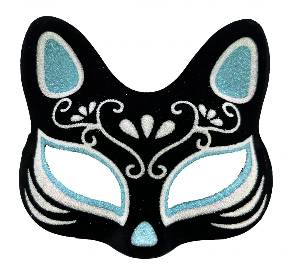 • Siyah Süet Gümüş Mavi Simli Kedi Maskesi