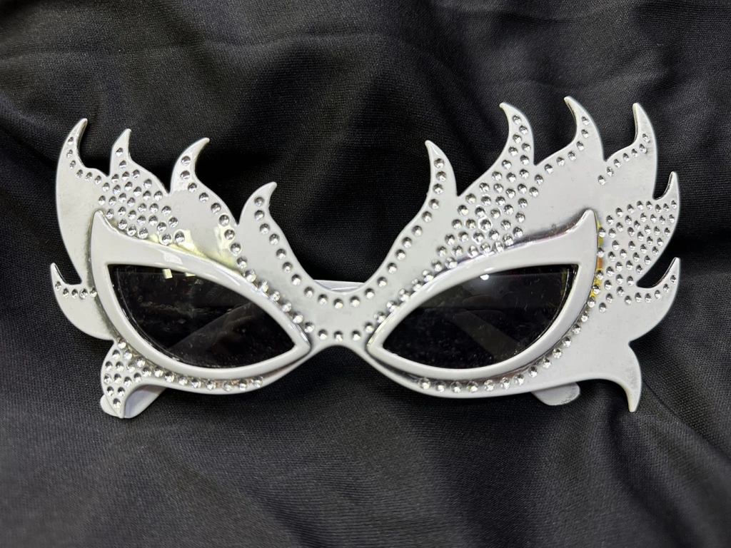 Alev formundaki çerçevesi, ışıltılı taş detayları ve özgün tasarımıyla bu gözlük maskeli balolardan konsept partilere, gece eğlencelerinden sahne şovlarına kadar her ortamda fark oluşturur.