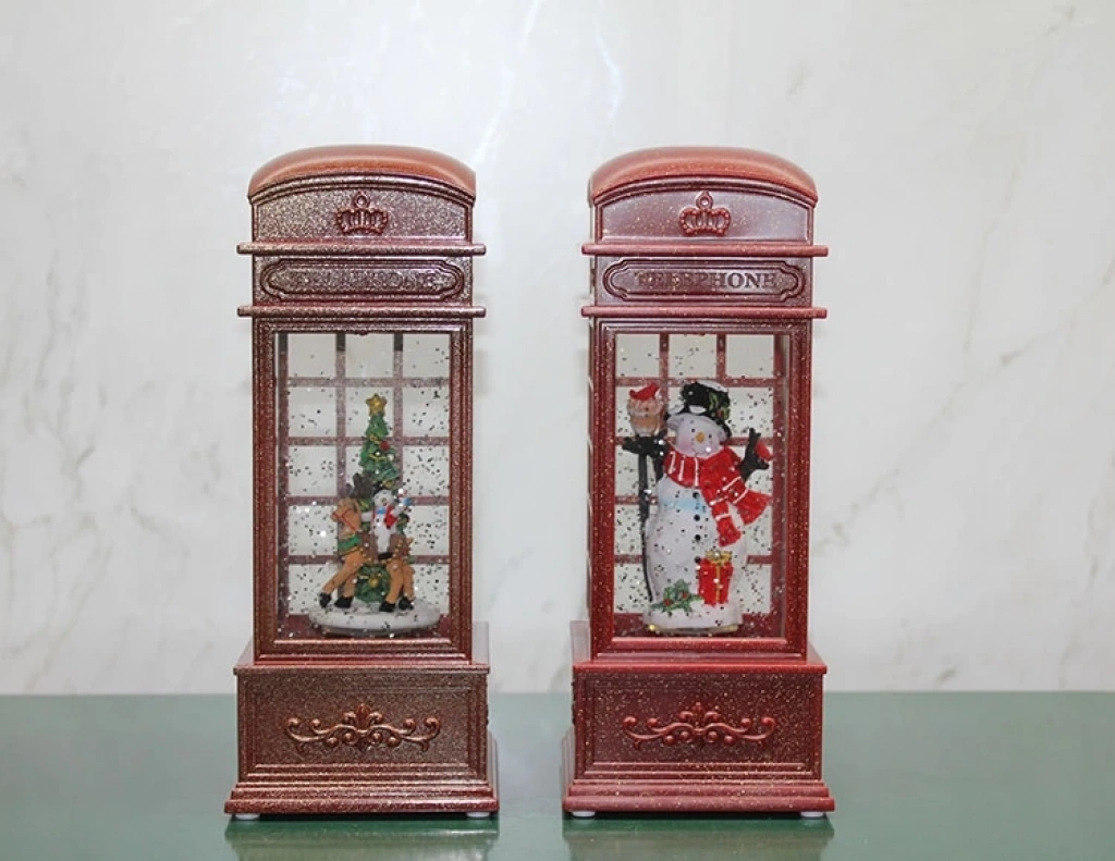 Telefon Kulübesi Tasarımı Yılbaşı Temalı Işıklı Müzikli Kar Küresi Alk3209 Ürün Ölçüleri 20*8 Cm Usb Ve 3 Pille Çalışmaktadır.