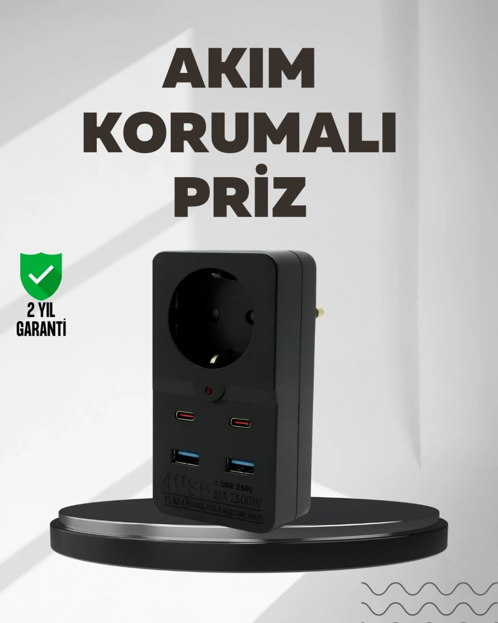 Tip Akım Koruma Prizi 10a 2500w Usb Type C Destekli