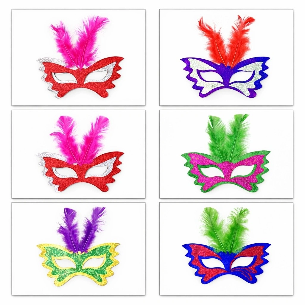 Tüylü Renkli Karton Parti Maskesi – 6 Renk