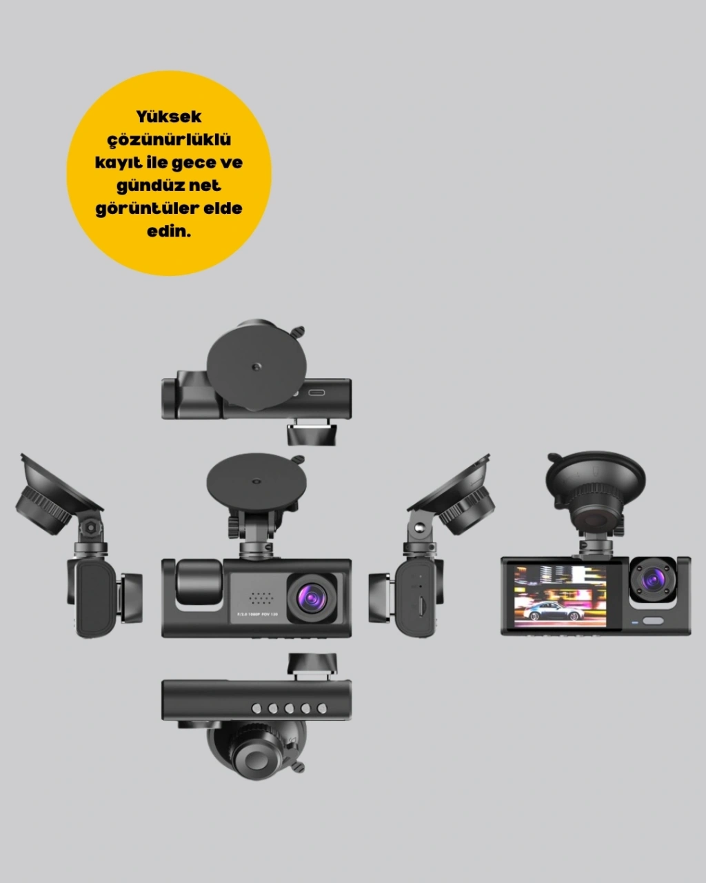 Araç güvenliği için geliştirilen üç kameralı araç kamerası, sürüş sırasında tüm detayları kaydederek olası riskleri en aza indirir. Full HD 1080P ön kamera, HD 720P iç ve arka kameralarla birlikte net görüntüler sunar. Gece görüş özelliği sayesinde karanlık yollarda bile her detayı görmenizi sağlar. 170° geniş açılı lens, kör noktaları ortadan kaldırarak sürüş güvenliğini artırır. G-sensör, ani darbeleri algılar ve kritik anları otomatik olarak kaydedip koruma altına alır. Park halindeyken bile hareket algılama özelliği sayesinde aracınız güvende olur. 2 inçlik ekran, kayıtları kolayca izlemenize imkan tanır. 32 GB Micro SD kart desteğiyle uzun süreli kayıt yapılabilir. Suya ve toza dayanıklı yapısıyla uzun ömürlü kullanım sunar. Kompakt tasarımı sayesinde araç içinde fazla yer kaplamaz. Sürüş güvenliği için ideal olan bu cihaz, kazalarda kanıt niteliği taşıyan kayıtlar yak sizi her zaman destekler. Hem şehir içi hem uzun yol sürüşlerinde güvenliğinizi artıran çok yönlü bir çözümdür.