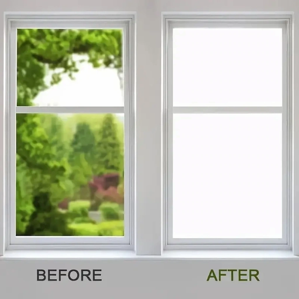 UV engelleyici buzlu cam filmi, temiz ve kuru cam yüzeylere uygulanabilen ve bu yüzeylere yapışabilen bir üründür.
