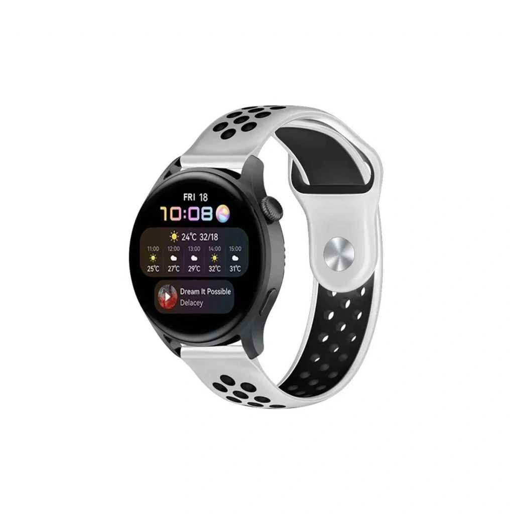Watch 22mm Spor Delikli Kordon - Beyaz-siyah
