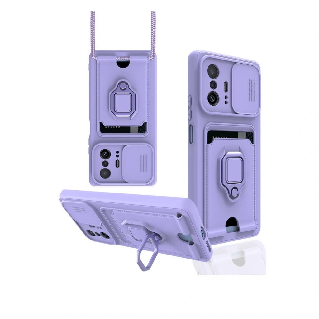 • Xiaomi Mi 11t Pro Kılıf Zuma Kartvizitli Yüzüklü Silikon - Lila