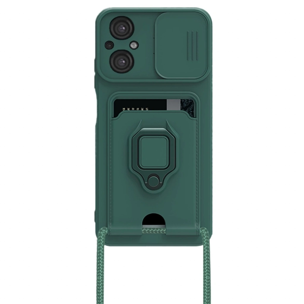 Xiaomi Poco M5 Kılıf Zuma Kartvizitli Yüzüklü Silikon - Yeşil