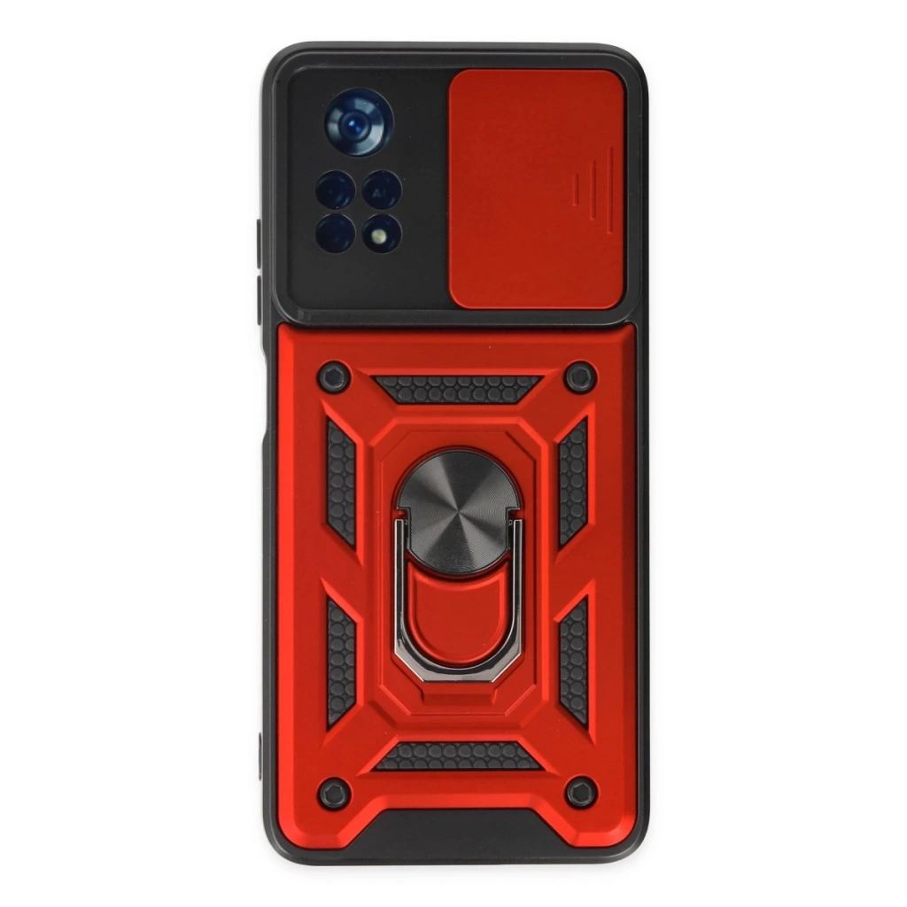 • Xiaomi Poco X4 Pro 5g Kılıf Pars Lens Yüzüklü Silikon - Kırmızı