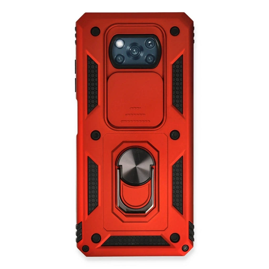 Xiaomi Pocophone X3 Kılıf Pars Lens Yüzüklü Silikon - Kırmızı