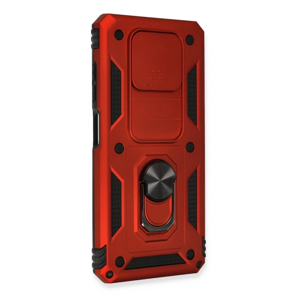 • Xiaomi Pocophone X3 Kılıf Pars Lens Yüzüklü Silikon - Kırmızı