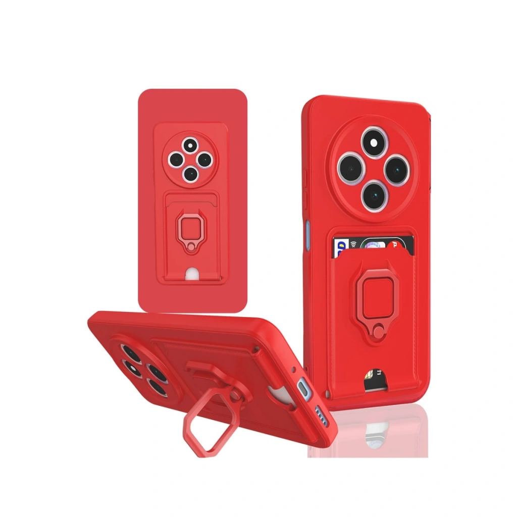 Xiaomi Redmi 14c Kılıf Zuma Kartvizitli Yüzüklü Silikon - Kırmızı
