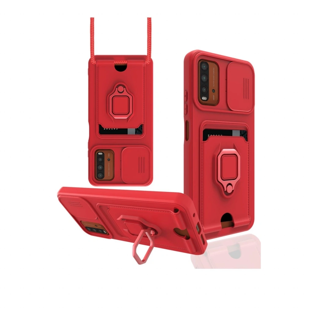 Xiaomi Redmi 9t Kılıf Zuma Kartvizitli Yüzüklü Silikon - Kırmızı