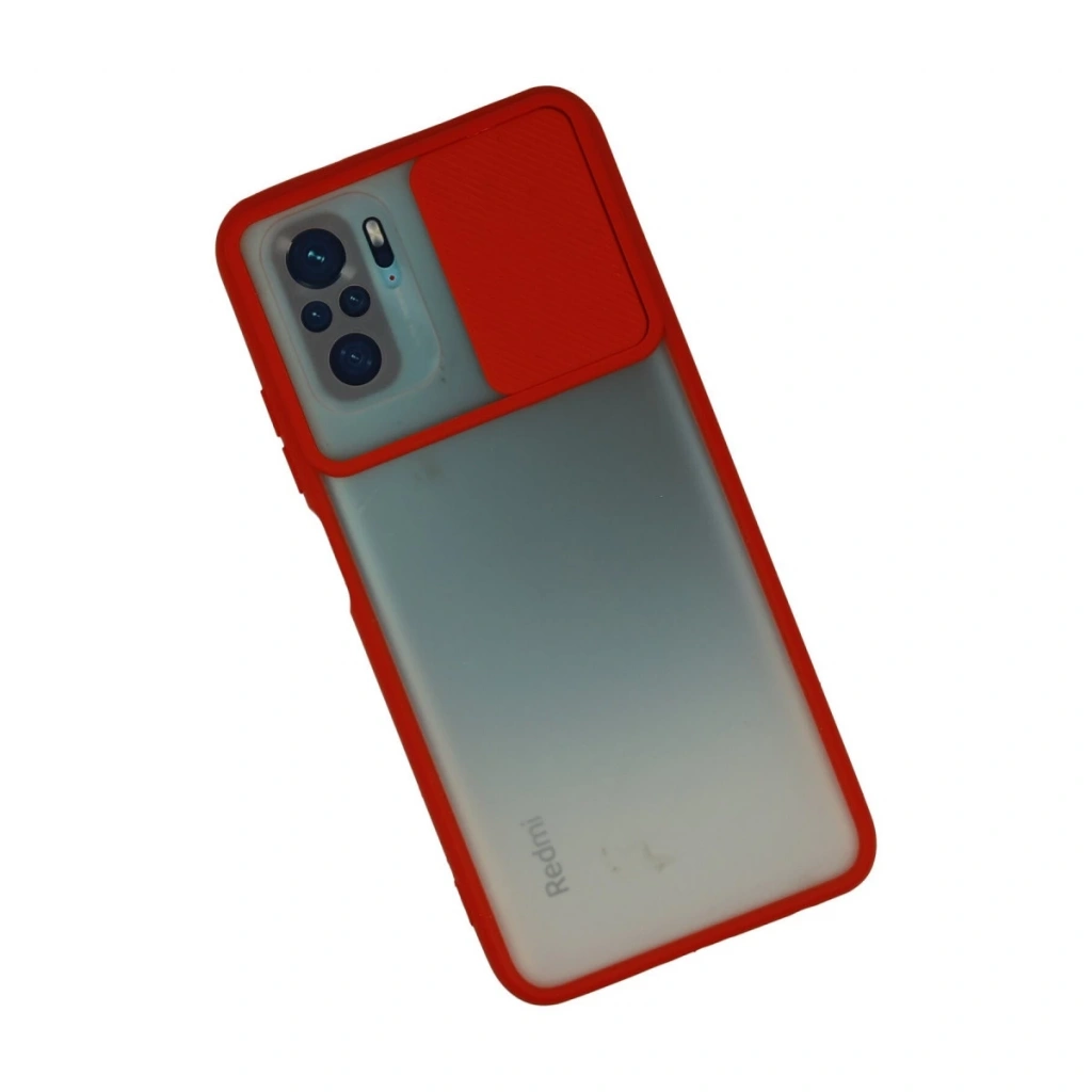 Xiaomi Redmi Note 10 Kılıf Palm Buzlu Kamera Sürgülü Silikon - Kırmızı