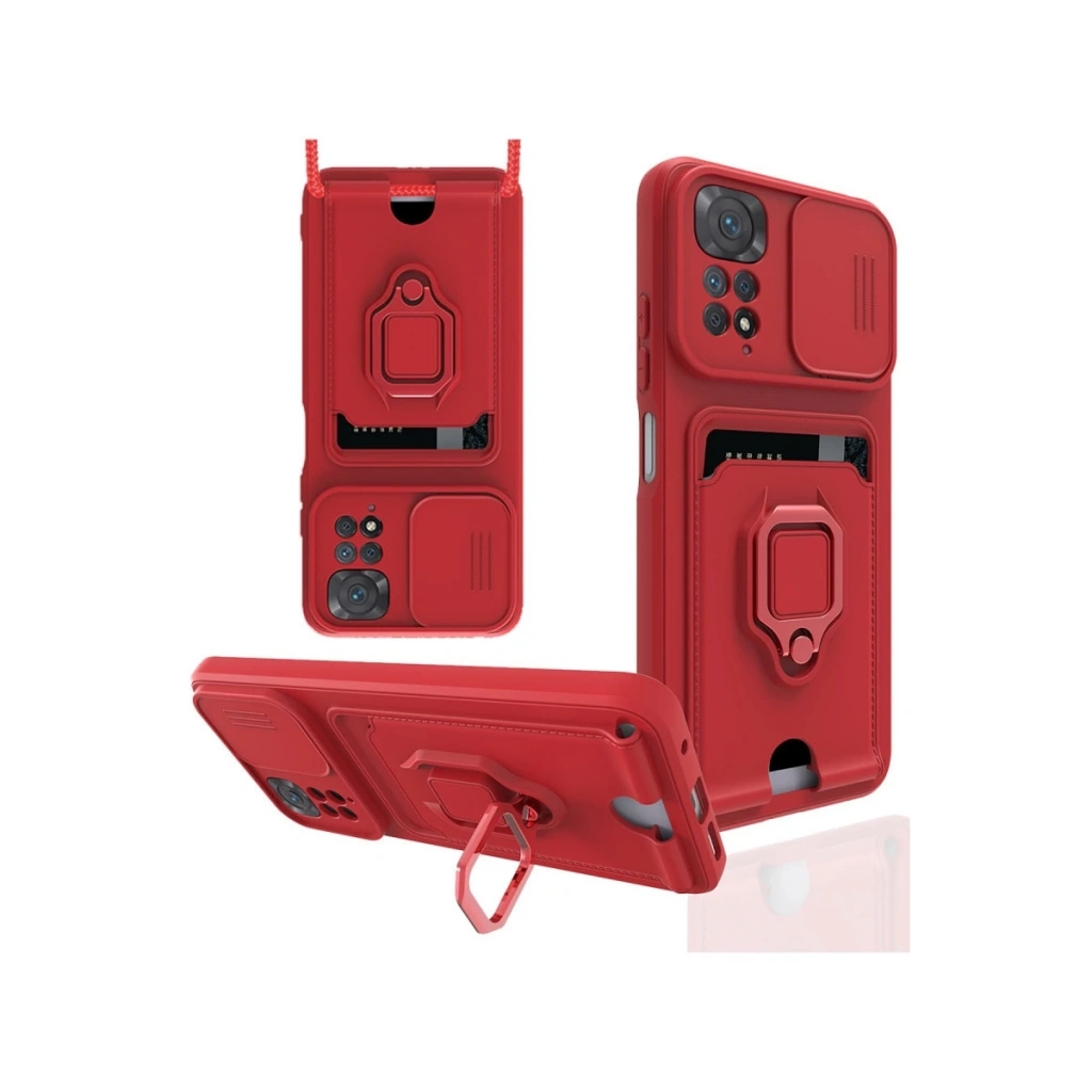 Xiaomi Redmi Note 11 Kılıf Zuma Kartvizitli Yüzüklü Silikon - Kırmızı