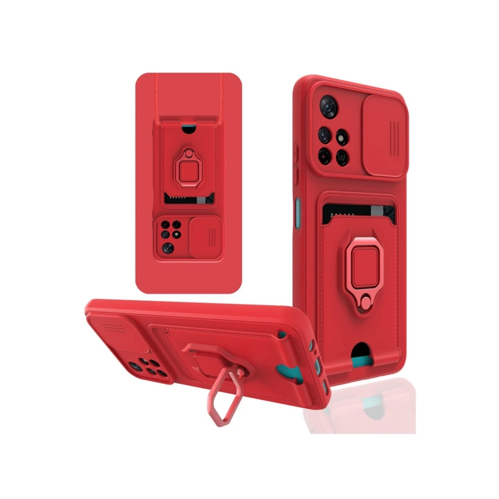 Xiaomi Redmi Note 11t Kılıf Zuma Kartvizitli Yüzüklü Silikon - Kırmızı