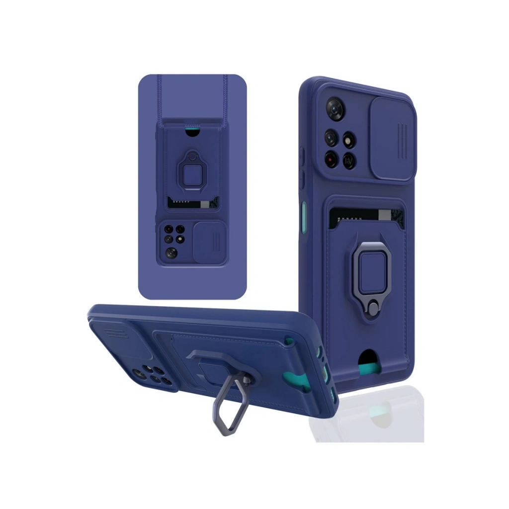 • Xiaomi Redmi Note 11t Kılıf Zuma Kartvizitli Yüzüklü Silikon - Lacivert